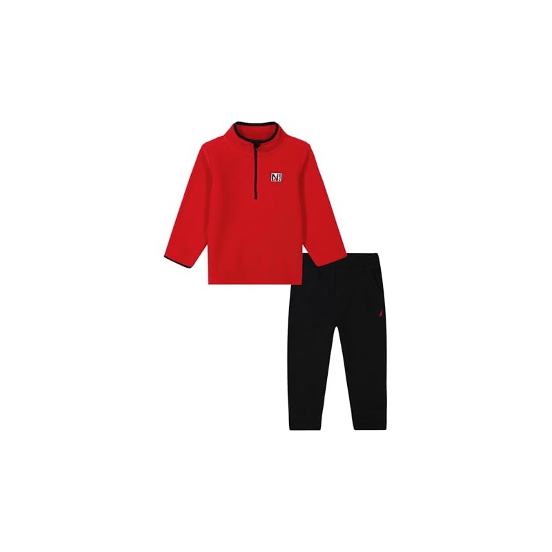 Nautica Baby Boy's 2pc Polar Fleece 1/2 Zip Jogger Set, Red Tango/Deep Black
