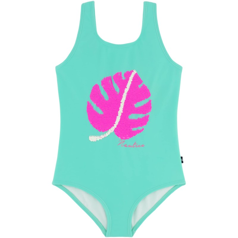 Nautica Girls' One-Piece Swimsuit with UPF 50+ Sun Protection, Quick Drying Bathing Suit, Cockatoo Palm, 4