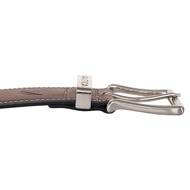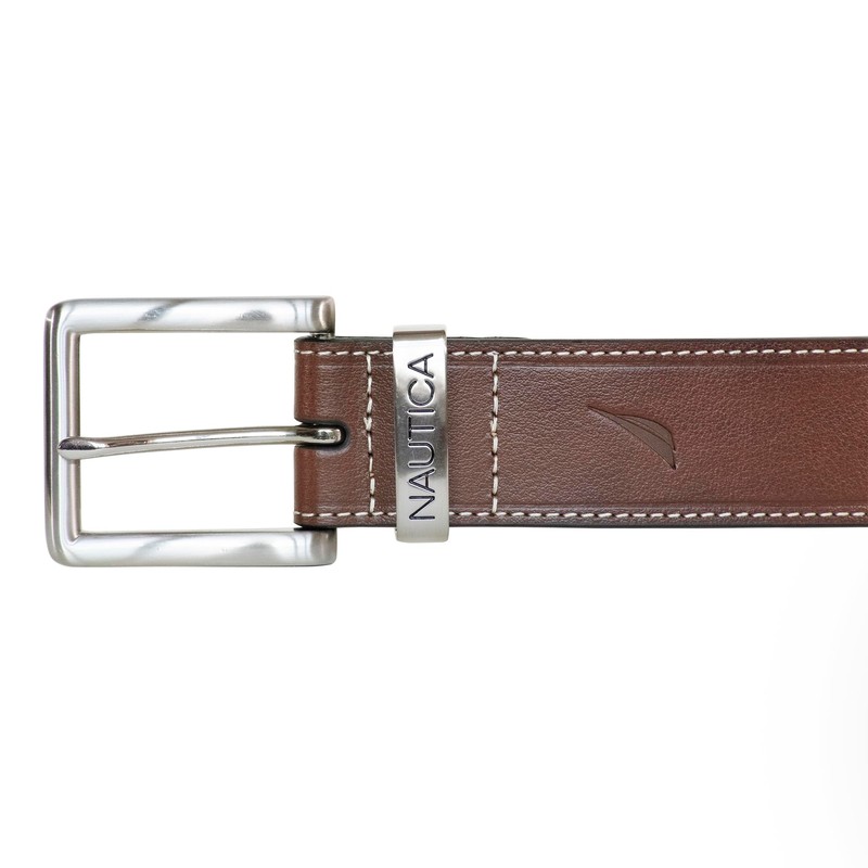- ENGRAVED BUCKLE & SIGNATURE KEEPER: Brushed nickel harness buckle with engraved Nautica logo and coordinating engraved keeper for a secure hold and elevated detail.