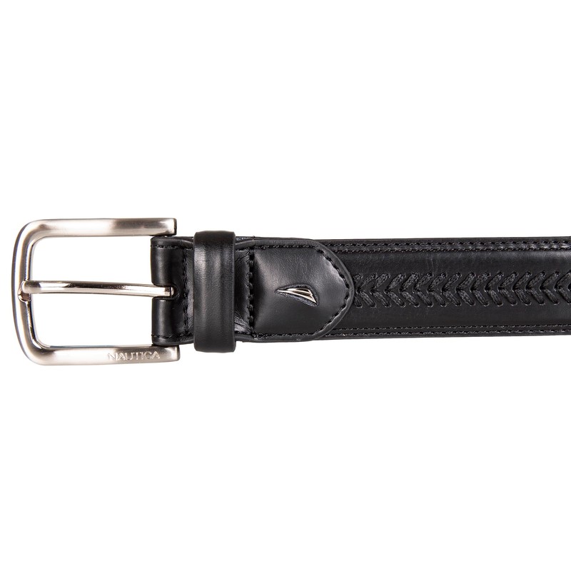 Nautica Men's Leather Laced Belt with Logo Engraved Buckle, Black, 36