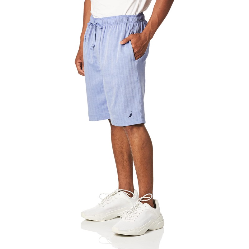 Nautica Men's Soft Woven 100% Cotton Elastic Waistband Sleep Pajama Short Bottom, Blue Bone, Small
