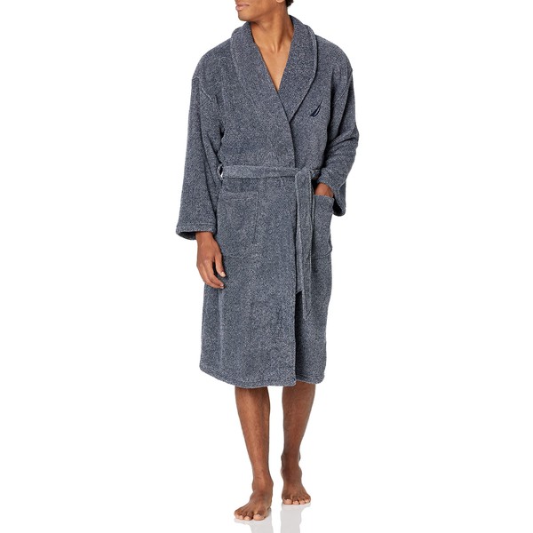 Nautica mens Nautica Men's Long Sleeve Cozy Soft Plush Shawl Collar Bathrobe, Navy (Kr06f7), One Size US