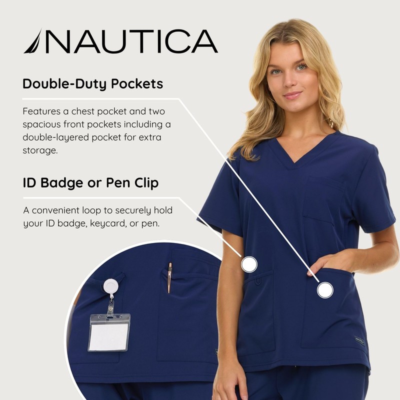 Nautica Scrubs for Women Set, 9 Pocket Breathable Scrub Sets For Woman Pants Tops, Comfortable Soft Stretch Womens Scrub Sets