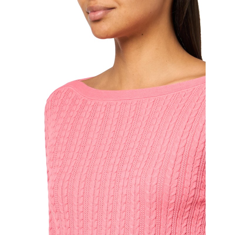 - Features: Sweater, Solid, boatneck, cable, long sleeve, sweater
