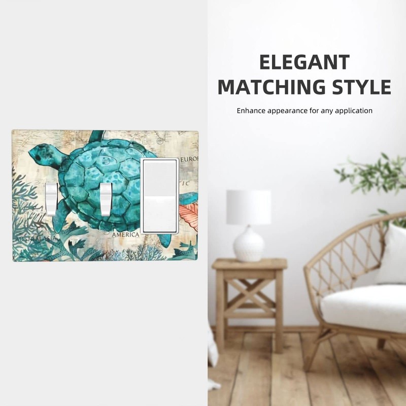 Nautical Biological Sea Turtles Combination Wall Plate Decorative 3 Gang Light Switch Cover Double Toggle Single Rocker Switchplate Electrical Faceplate for Farmhouse Bathroom Home Decor