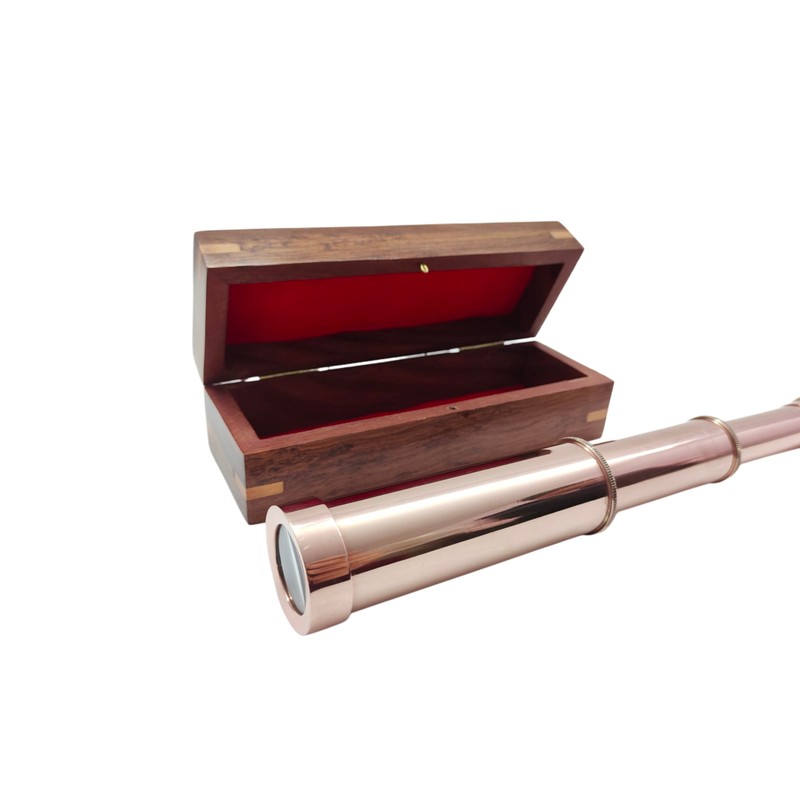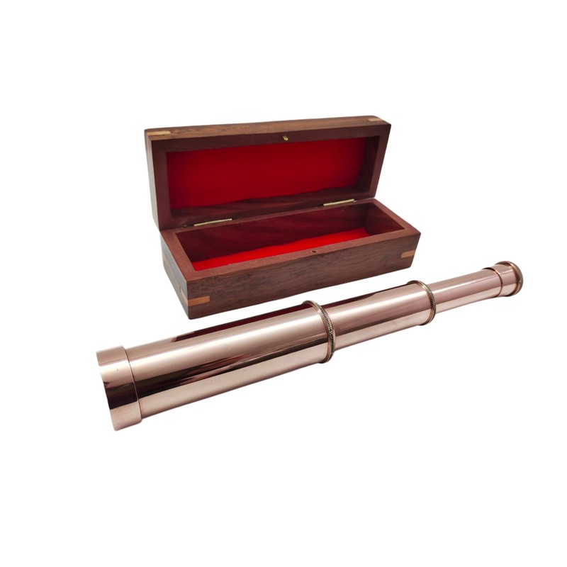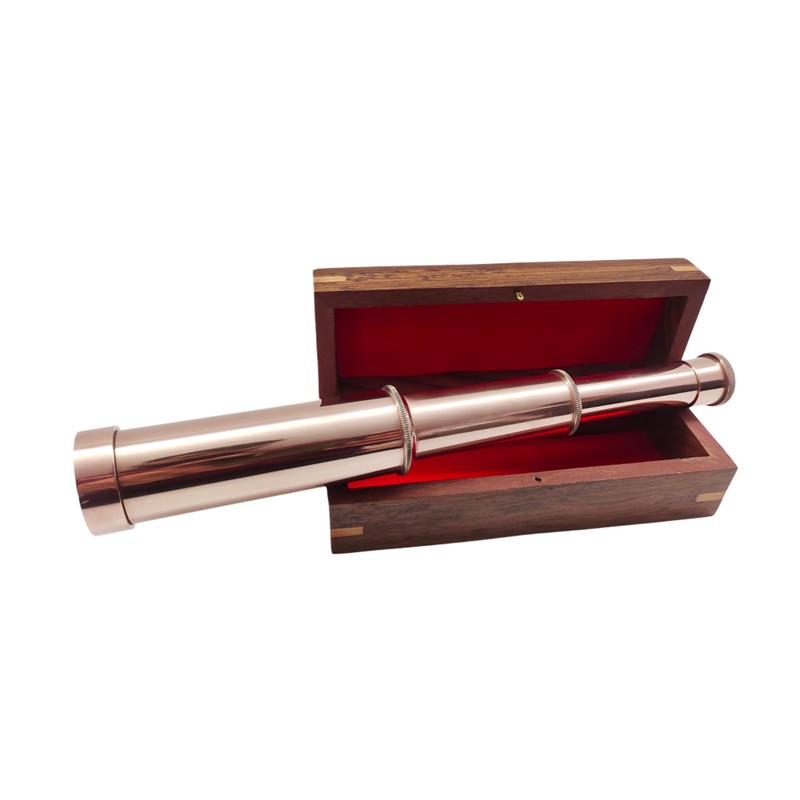- Material Used : Brass/Leather & Wooden , Color : Copper Finish , This is fully functioning quality reproduction of antique brass telescope used in olden times. It is a great imitation of vintage spyglass.