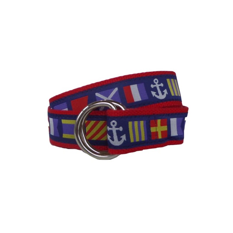 Nautical Flag D-Ring Belt Brass D-Ring 30 Red