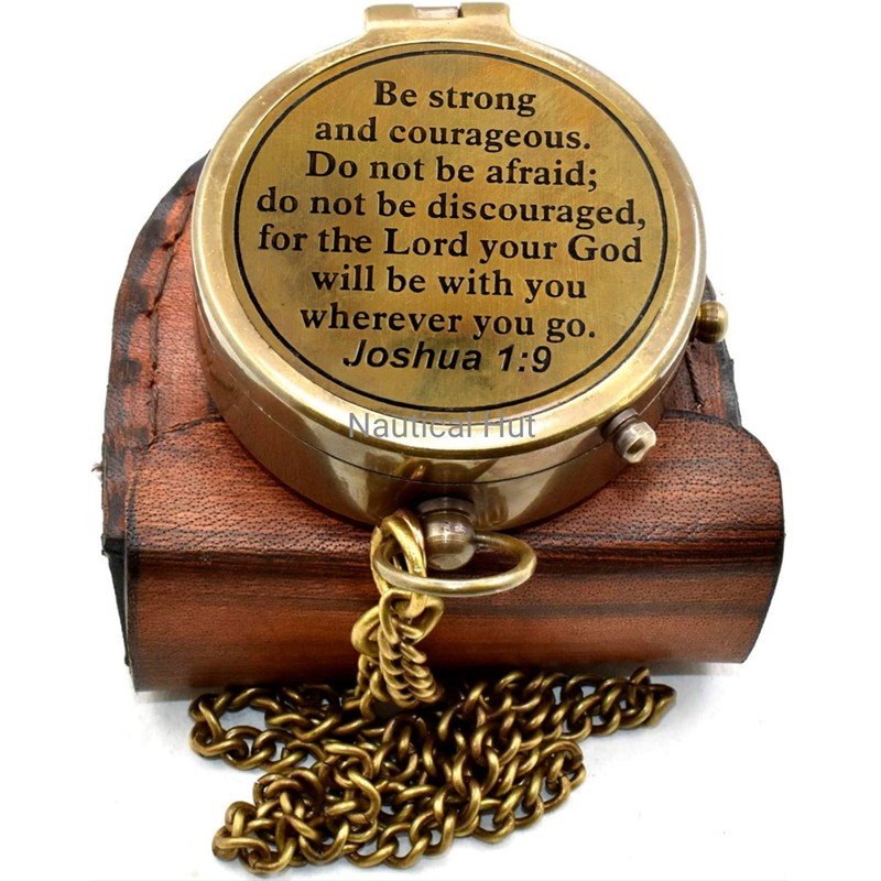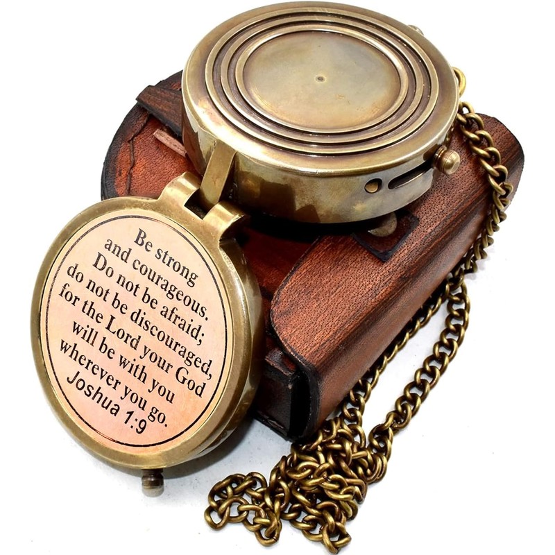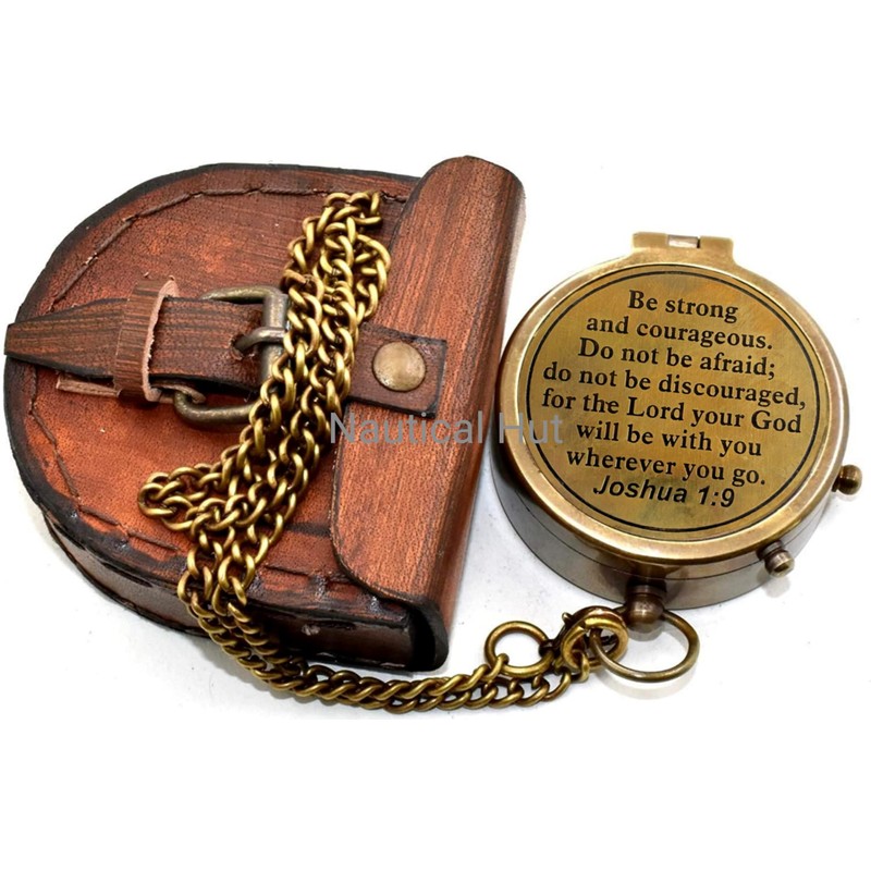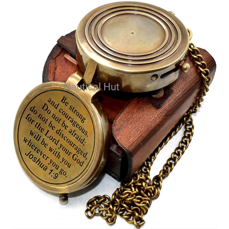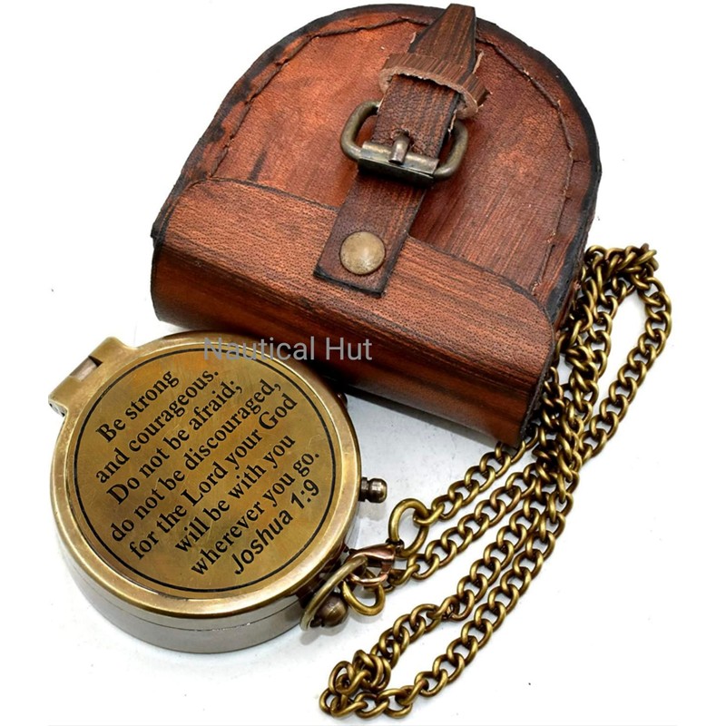 Nautical Hut Compass Your Tommy Your Tubbo Brass Nautical Pocket Compass with Leather Carry Case, Compass with Chain, Pirates Compass, Engravable Gift Compass, Camping Compass