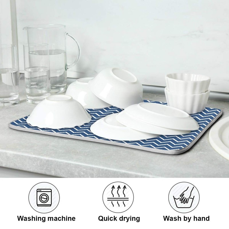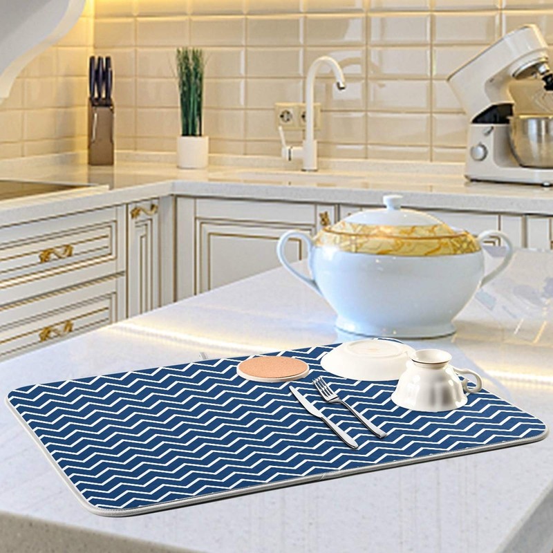 Nautical Navy Stripes Dish Drying Mat for Kitchen, Absorbent Microfiber Drying Pad Dish Mat, 24" X 18"