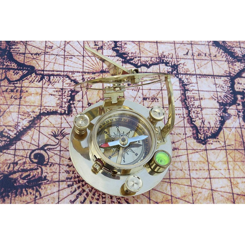 Nautical Replica Hub Fascinating Solid Brass Sundial Clock with Inset Compass & Engraved Vane. 3 Inches