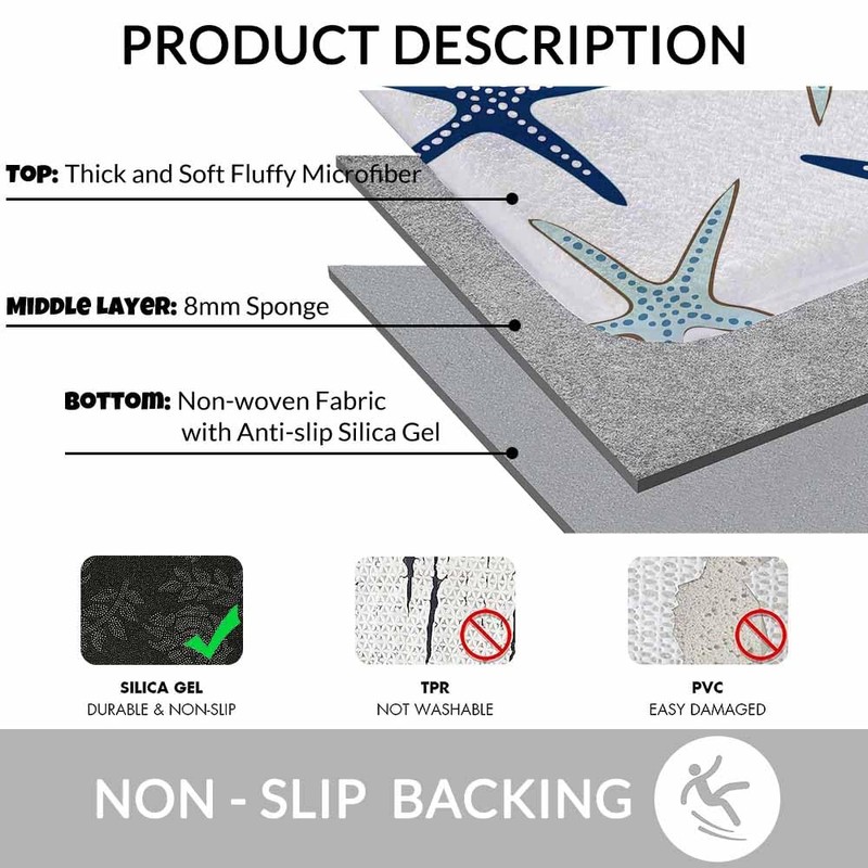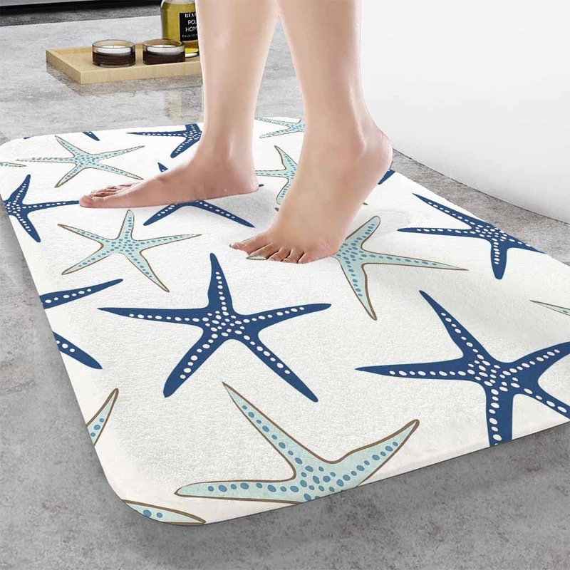 Nautical Starfish Bath Rugs Microfiber Bathroom Mat Soft Plush Shaggy Shower Mat for Bathroom Fluffy Comfortable Water Absorbent Carpet Non-Slip Machine Washable 16"X24"