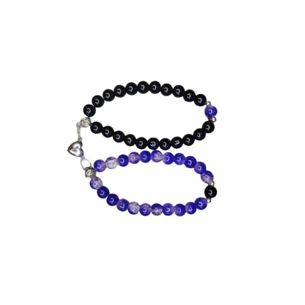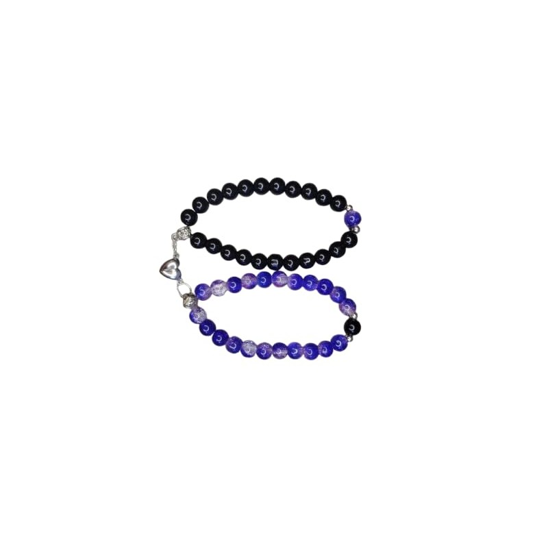 NAVAASU Multi Layer Stone Beads Couple-Combo Matching Best Friend Relationship Couple Bracelet (Black/Navy Blue)