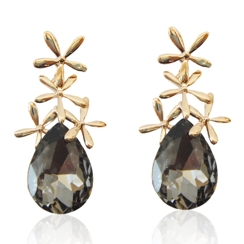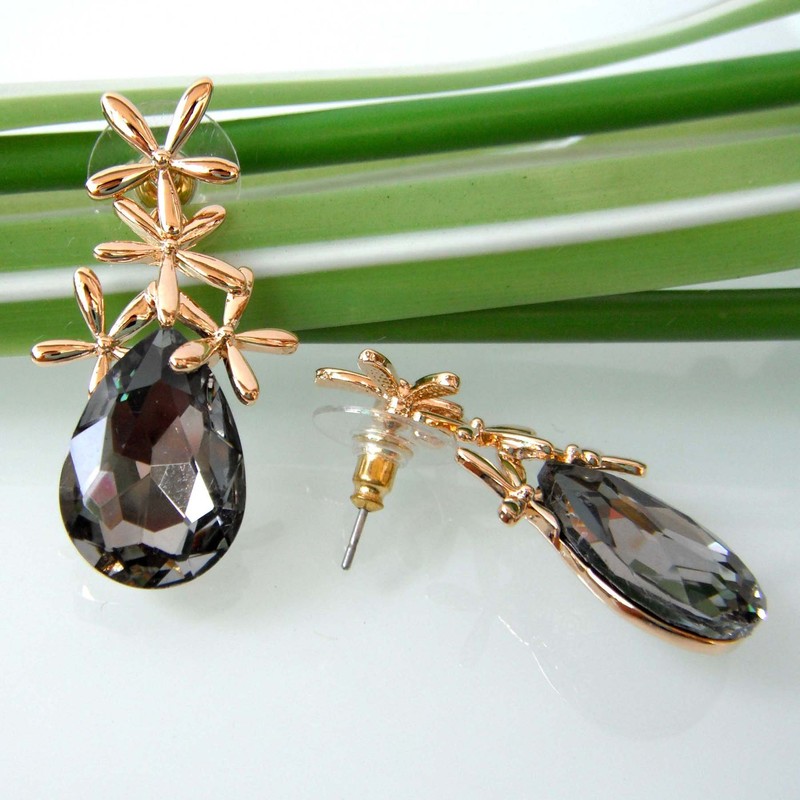 Navachi - 18K Gold Plated Base Metal Pear Cut Black Zirconium Oxide, gray