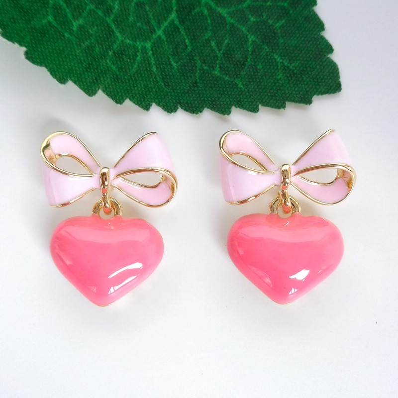 Navachi 18k Gold Plated Bow Heart Colorful Candy Enamel Womens Fashion Elegant Stud Earrings, Metal, without-zircon