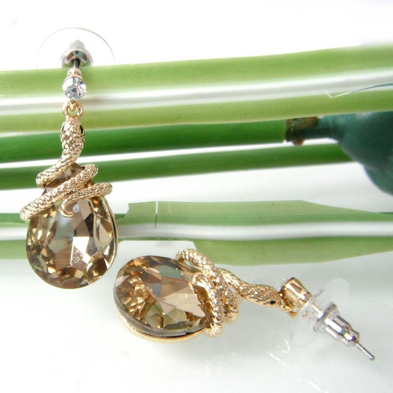 Navachi 18K Gold-Plated Crystal Cubic Zirconia Snake-Shaped Stud Earrings, black