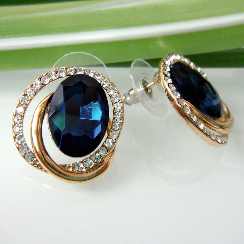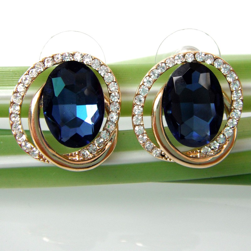 Navachi - arete de doble círculo chapados en oro de 18 quilates con vidrio blanco ovalado de circonia Azul