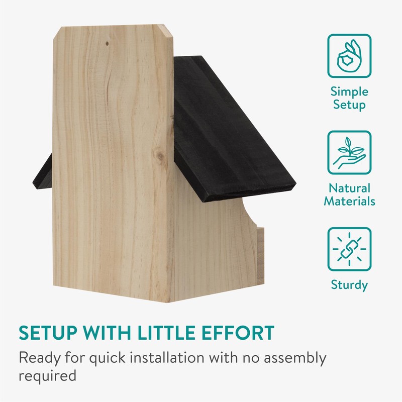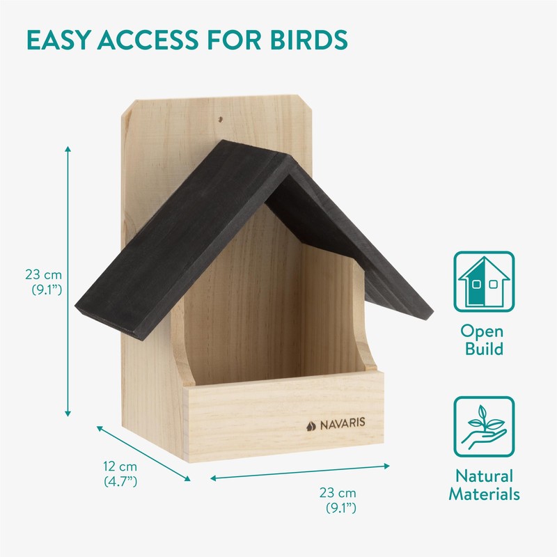 This wooden bird house by Navaris is a must-have for any garden and wildlife enthusiast. This nesting box is perfect for all small birds, including swifts, robins, and sparrows. In durable, weather-resistant wood, this bird nesting box is designed to provide a comfortable space for wild birds. Easy to install on any fence or tree, this wooden bird box is a perfect addition to your garden, offering a haven for wild birds and adding a touch of charm. With this bird nest box, you can support the local bird population while enjoying the beauty and melody they bring to your outdoor space.