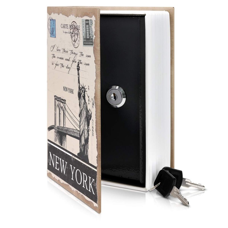 Navaris Book Safe Size M with 2 x Keys - 18.5 x 11.5 x 5.2 cm - New York Design - Dummy Book Safe with Secret Compartment - Book Money Hiding