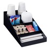 - All your coffee and tea essentials in one place. Store sugar packets, creamer, stir sticks and more in the sections provided.