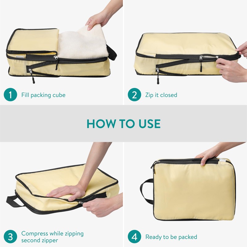 - Maximize Packing Space: Our reusable compression packing cube set offers the ultimate packing solution to maximize luggage space. Keep your clothes neat, organized, and wrinkle-free, turning packing chaos into order.