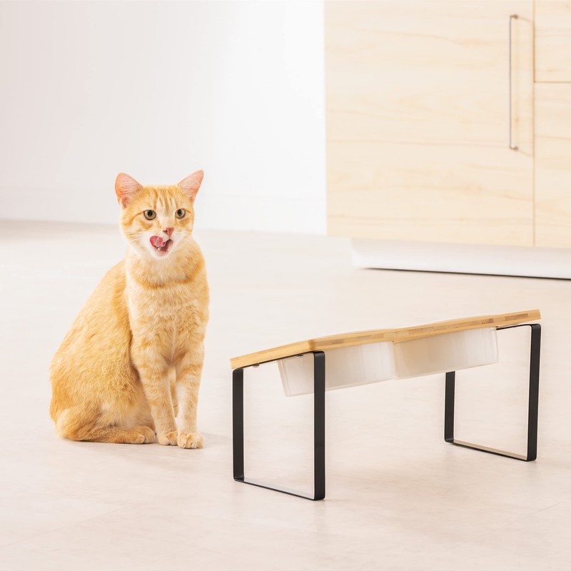 - By elevating the bowls off the ground, the feeding station allows your dog or cat to eat and drink in comfort. The stand also tilts the bowls towards your pet so they can feed more easily.