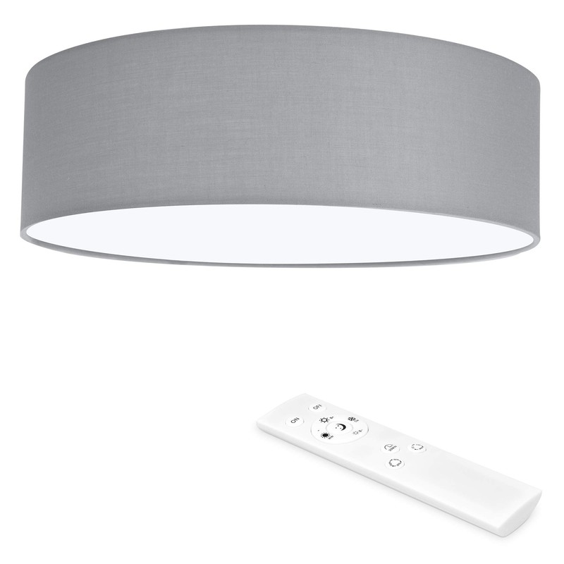 Mit der LED Deckenleuchte mit stylischem Bezug aus Stoff h?lt Design Einzug in Dein Zuhause! Inkl. Dimmfunktion, ver?nderbarer Farbtemperatur, Nachtmodus und Timer - und Fernbedienung.