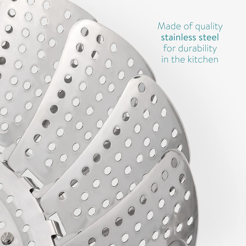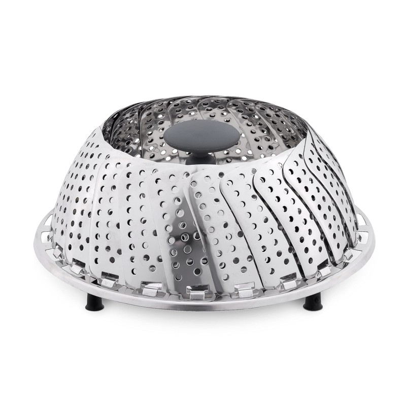 - Details: You will receive a steamer insert made of stainless steel and nylon with a weight of 240 g. When folded, the steamer measures 18 x 18 x 8 cm. When unfolded, it has the dimensions 28 x 28 x 6 cm.