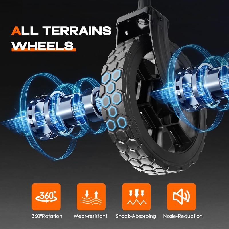 Superior PVC Wheels :Made of high-quality PP+PVC wheels. Come with all-terrain 7"x 1.5" thick wide solid wheels. They have higher wear resistance, shock absorption and firm grip, and the wheels move more comfortably.