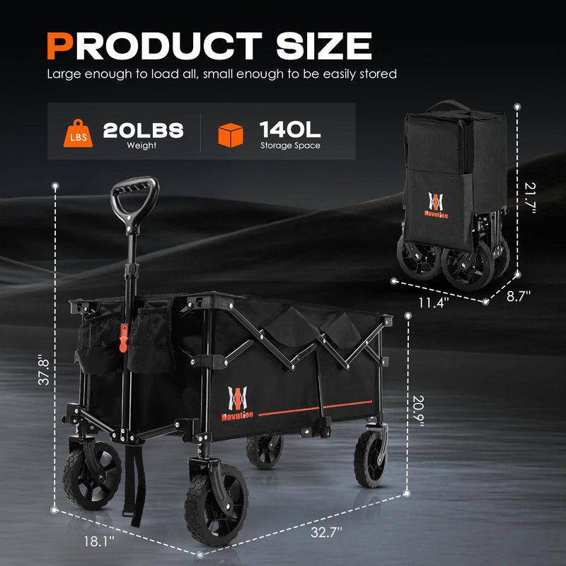 Larger Storage Capacity : We have upgraded our collapsible wagon with an enlarged storage space as well as an enhanced weight capacity. Compared with other folding wagons, Navatiee wagon cart feature is much deeper in storage space.
