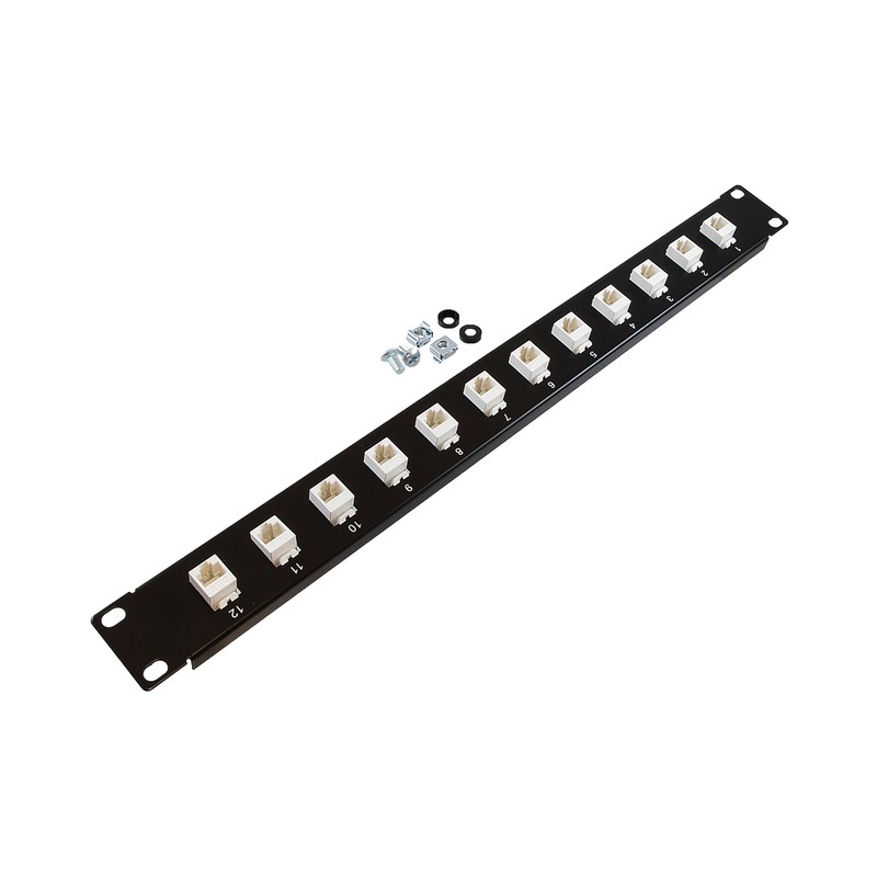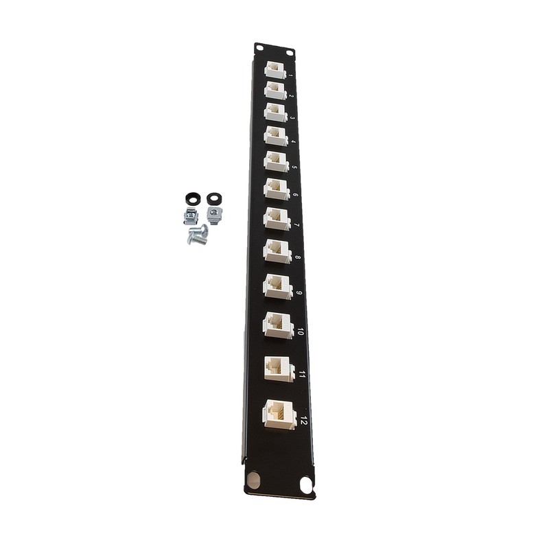 NavePoint 1U (1.75") 19 Inch Panel with 12 Cat6 Mini-Couplers