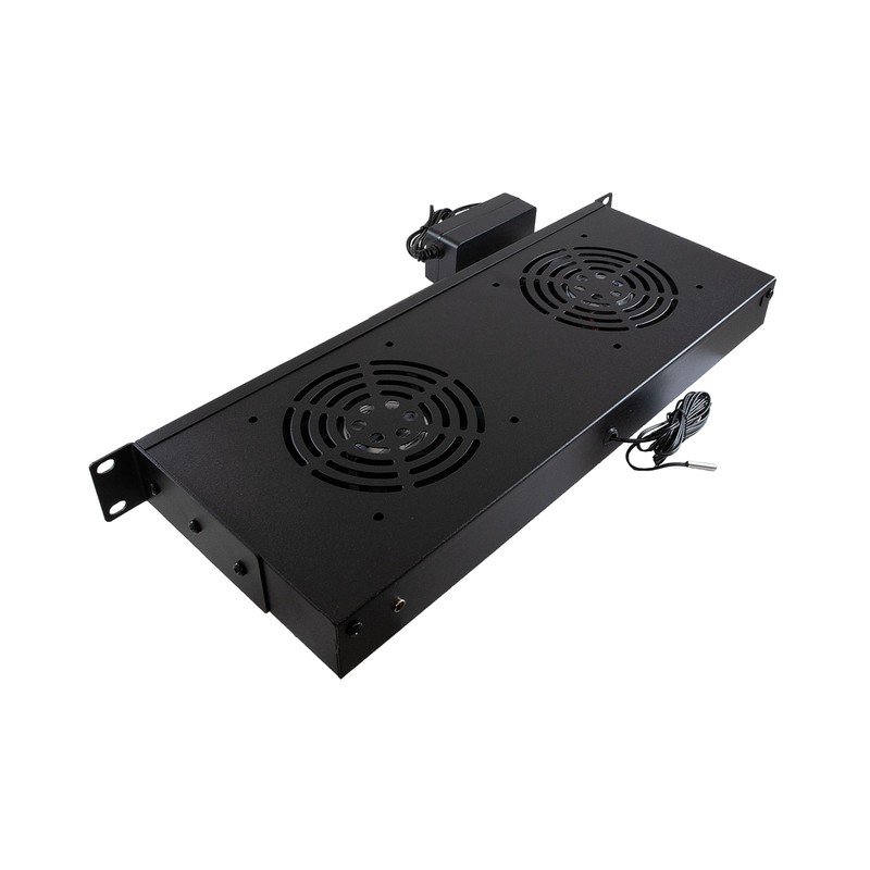 NavePoint 1U 12V DC Fan Unit with 2 Fans and Thermostat, Quiet 46.14 dB-A, 260.9 CFM, UL Power Cord with NEMA 5-15P Plug, Steel Cooling Panel for 19" Server Racks