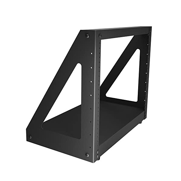 NavePoint 2-Post Open Frame Desk Rack, 8U, 10-32 Threaded, Black, 14.04 lbs, Cold Rolled Steel, Heavy Duty
