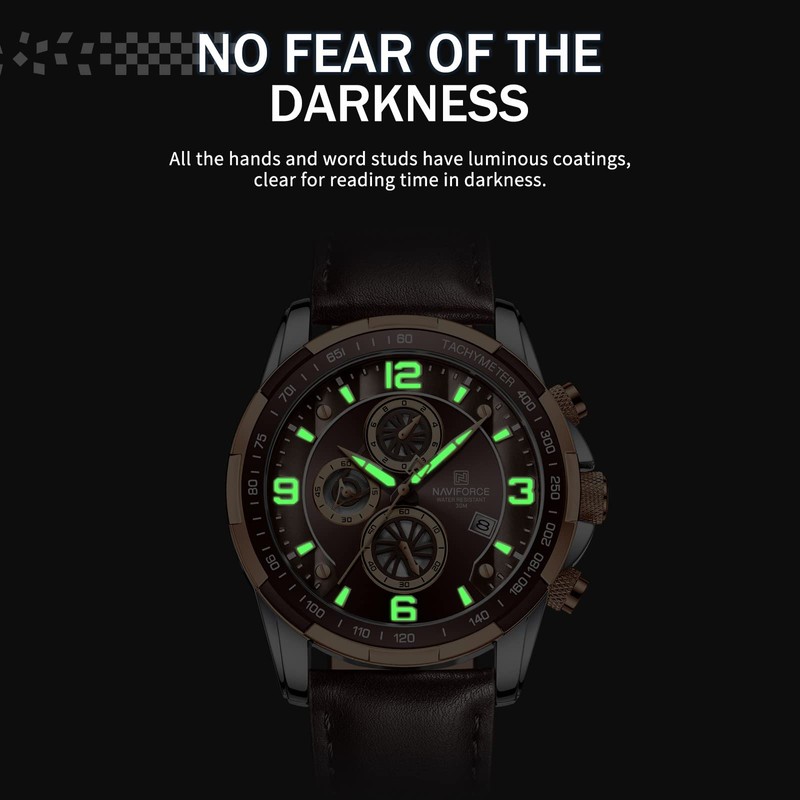 NAVIFORCE Sport Watches for Men Analog Quartz Chronograph Leather Strap Wrist Watch