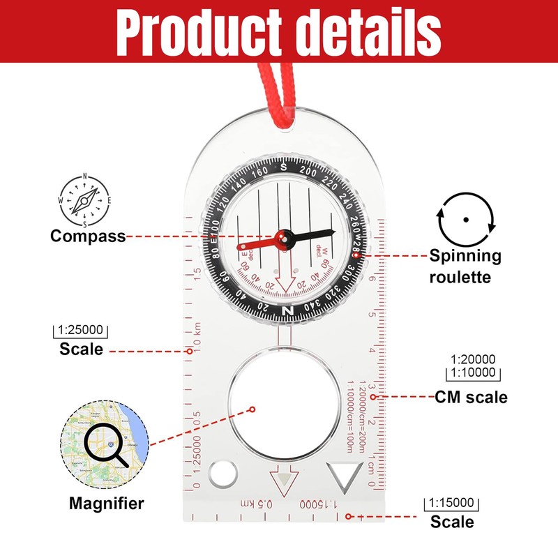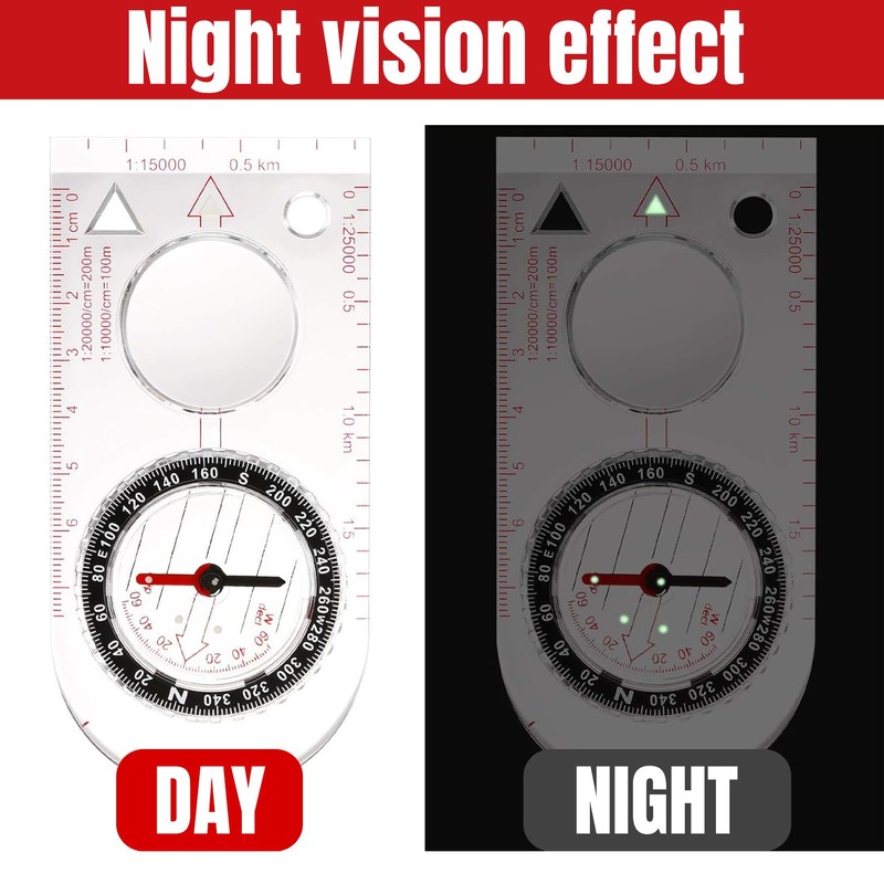 - Night Vision Ready: The compass features a glowing directional arrow, ensuring you can effortlessly navigate in the dark or at night. The scale is precise and easy to read, making it a reliable guide for your journey.