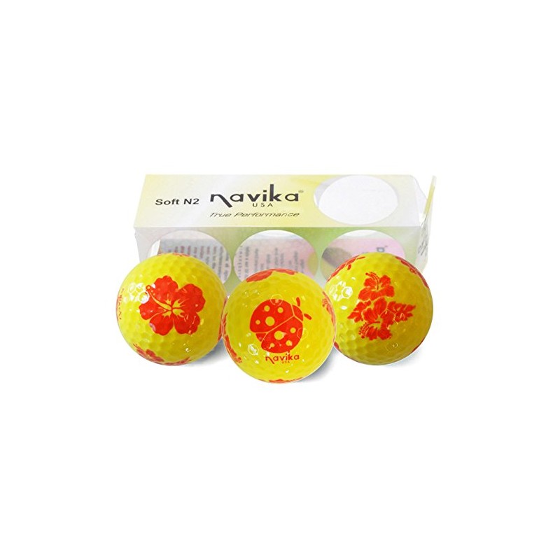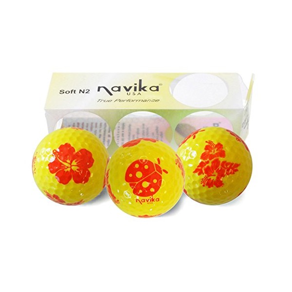 Navika Golf Balls- Ladybug and Tropical Flower Multi-Imprint on Bright Yellow High Visibility Color (3-Pack)