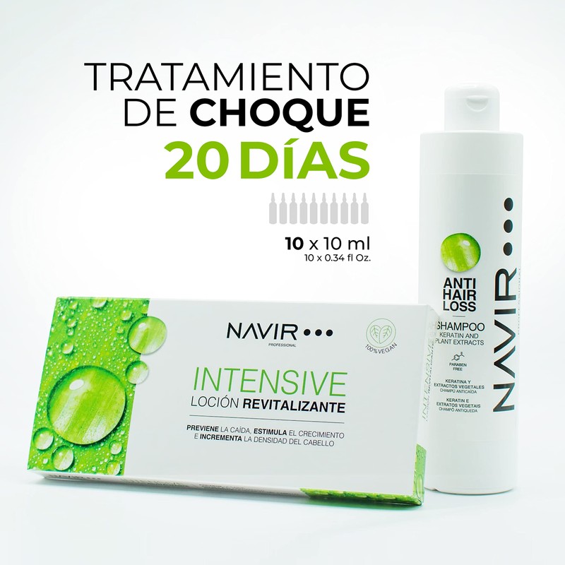 - Verhindert das Ausfallen: Die Anti-Haarausfall-Ampullen INTENSE REVITALISIERENDE LOTION von NAVIR, dank ihres Beitrags von Vitaminen, Antioxidantien, Mineralien und Aminosäuren geben dem Haar Vitalität und Stärke zurück.