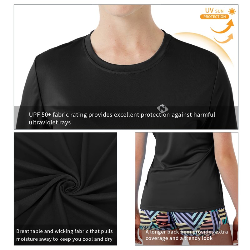 NAVISKIN Women's Quick Dry Rash Guard Shirts UPF 50+ Sun Protection Short Sleeve Shirts Black Size L