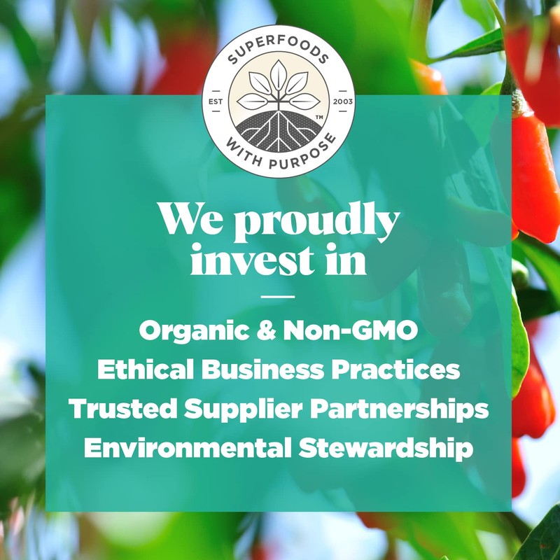 Navitas Organics Goji Berries are organic, naturally sun-dried dried, and unsulphured to ensure premium quality. A powerful superfood, Goji Berries have been used for over 2,000 years in traditional Chinese medicine. Navitas Organics Goji Berries are sourced from the fertile valleys of the Ningxia Province in China, where they natively grow, and are certified organic in both China and by the USDA. They're an excellent source of essential minerals and antioxidants, particularly vitamin A (providing 140% DV per serving). Navitas Organics Goji Berries have a unique savory-sweet taste and are delicious straight from the bag or added to trail mix, salads, yogurt or your favorite baked goods. USDA Organic, Kosher, Non-GMO, vegan, gluten-free.