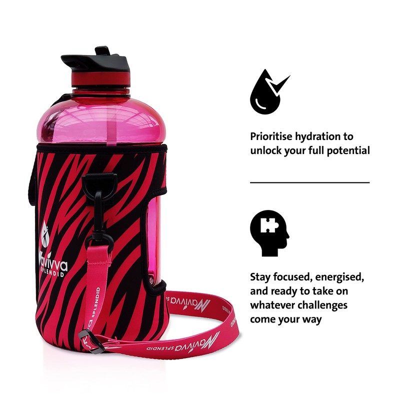 NAVIVVA SPLENDID Large 2L Water Bottle with Insulating Neoprene Cover and Straw Lid - BPA-Free, Dishwasher Safe, Portable, Eco-friendly with Carry Handle – Huge 2.2 Litre Capacity. (Pink Fire)