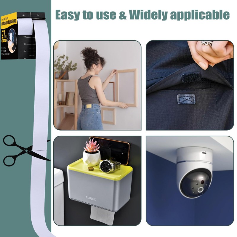 - ใ๐๐๐ฌ๐ฒ ๐ญ๐จ ๐๐ฌ๐ใThe hook and loop tape is designed for easy peel-and-stick application, and it can be easily trimmed to size. It's a simple solution for securing items without the need for making holes in surfaces.