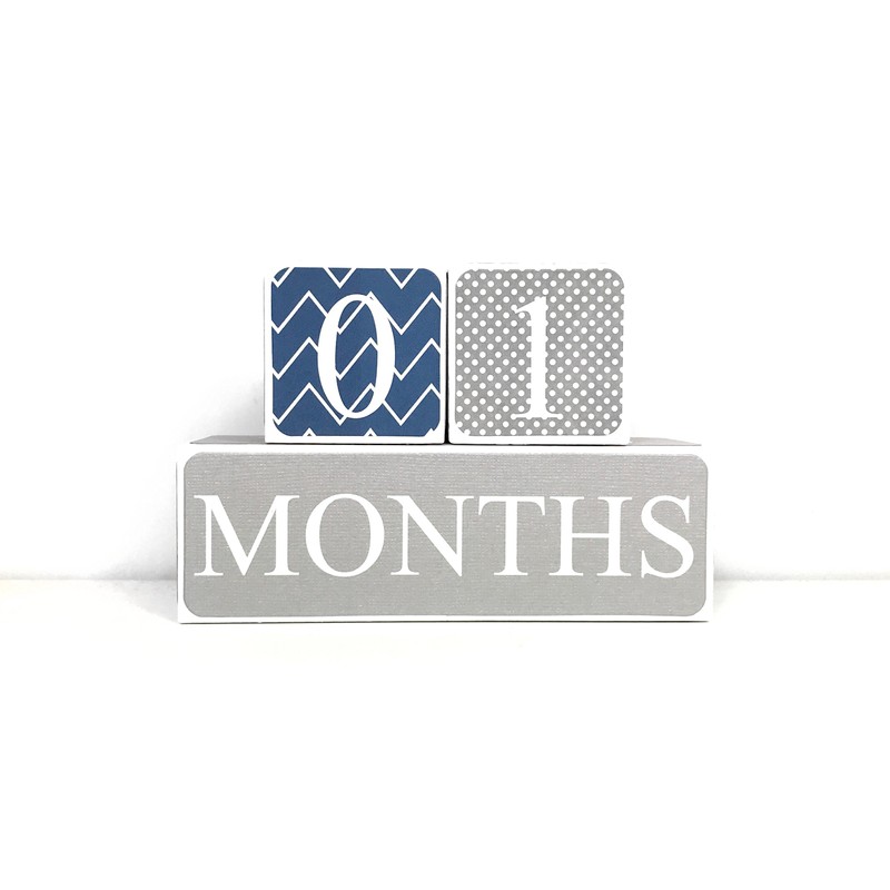 Navy and Gray Baby Age Blocks, Milestone Blocks, Photo Prop, Countdown Blocks