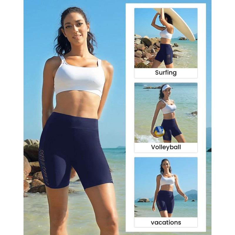 - High Waisted Swim Shorts: High-waisted swim shorts with wide elastic waistband contour your silhouette, offering tummy control and a sleek look through secure yet comfortable compression.