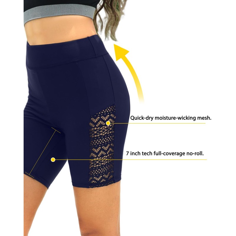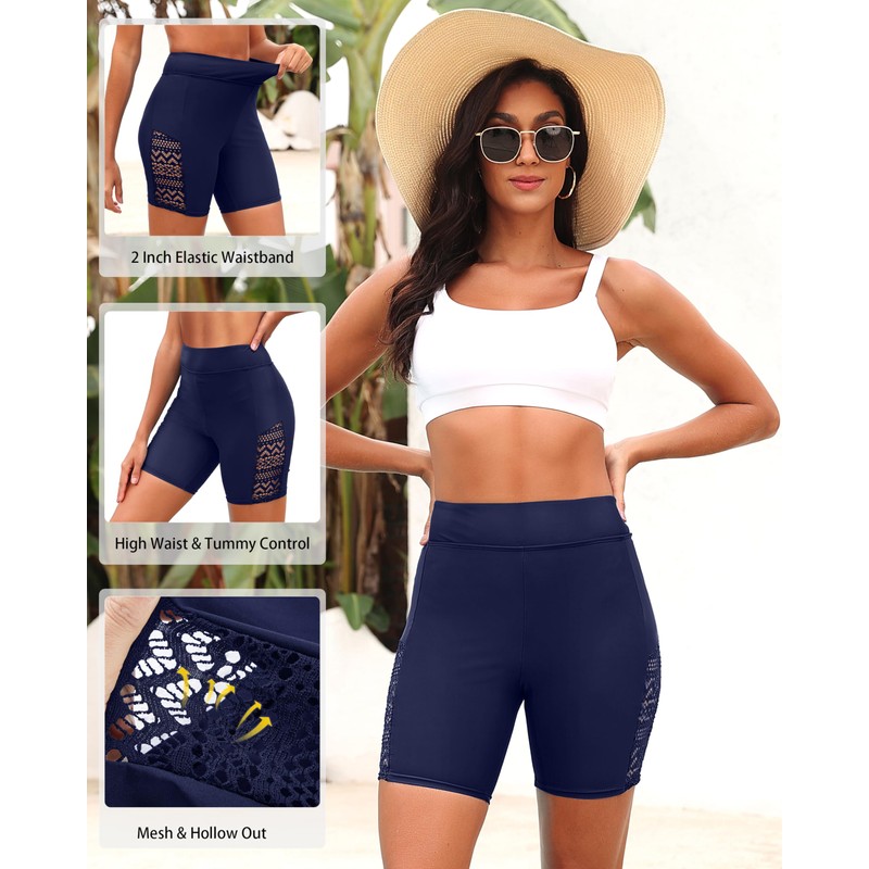 Navy Blue 7" Swim Shorts Women - High Waisted Bathing Suit Shorts Tummy Control Boy Short Swimsuits Lace 2025 Swimwear Bottom L