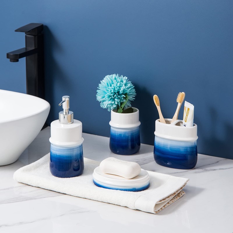 - Attractive Blue Soap Dispenser is Made of Premium Ceramic. You Can Fill It With Your Dish Soap For Kitchen Sink or As a Seasonal Decor in Bathroom.