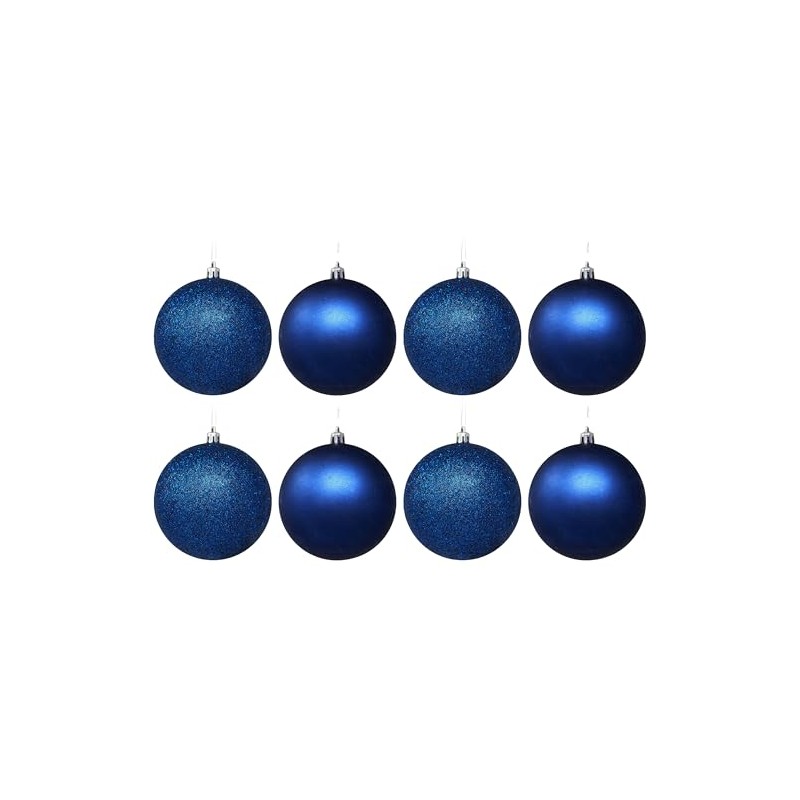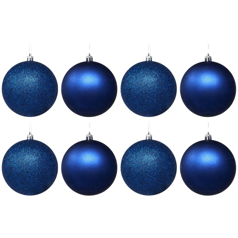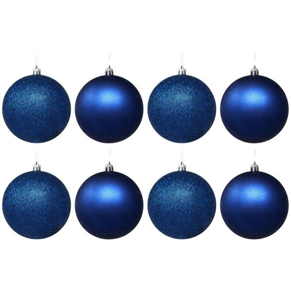 Navy Blue Christmas Baubles 10cm Tree Ornaments - Glitter Matt - Set of 8