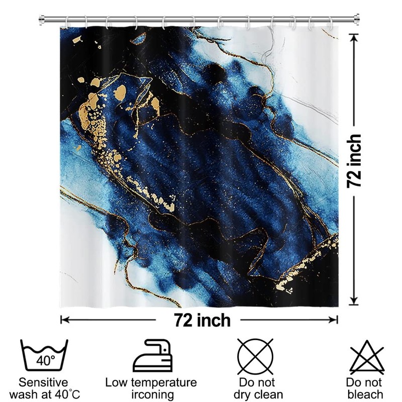 Navy Blue Marble Shower Curtain, Uiiooazy Abstract Dark Blue Polyester Waterproof Bathroom Decoration Modern Luxury Gold Glitter Marble Fabric Bathtub RV Shower Curtains with Hooks 72x72 inches