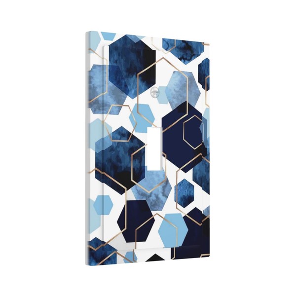 Navy Sky Blue Golden Abstract Hexagon Modern Geometric Honeycomb Marble 1-Gang Single Toggle Device Electrical Light Switch Wall Plate Mid Size Decorative Receptacle Outlet Cover Face Plate Dimmer
