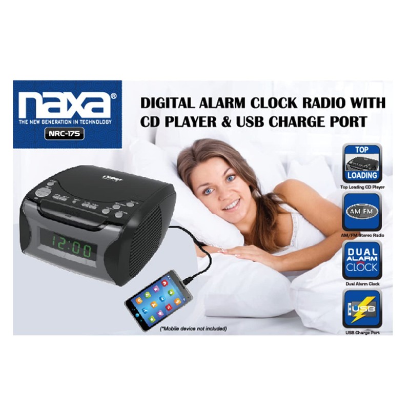 Digital Alarm Clock Radio with CD Player and USB Charge Port