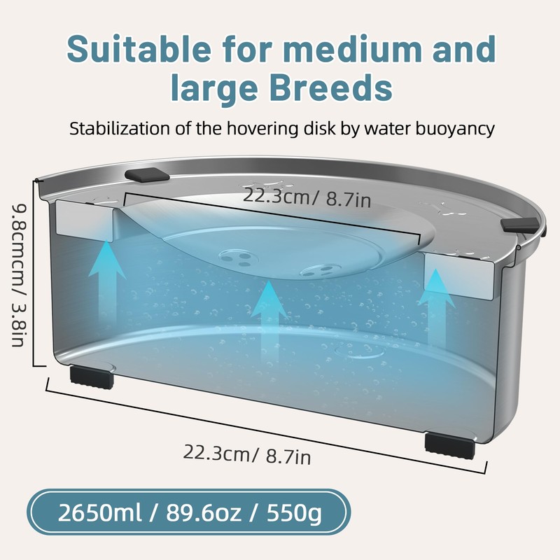-Das schwimmende Design der Schale sorgt dafür, dass der Hund zwar trinkt, aber nicht verschluckt oder verschüttet wird. Dies hilft dem Hund, eine gute -Gewohnheit des langsamen Trinkens zu entwickeln.