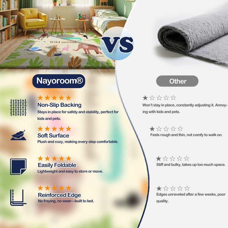 - Kids & Pets Friendly: Stain-resistant, non-toxic construction withstands spills/paws, while cushioned surface protects knees and paws during playtime chaos.